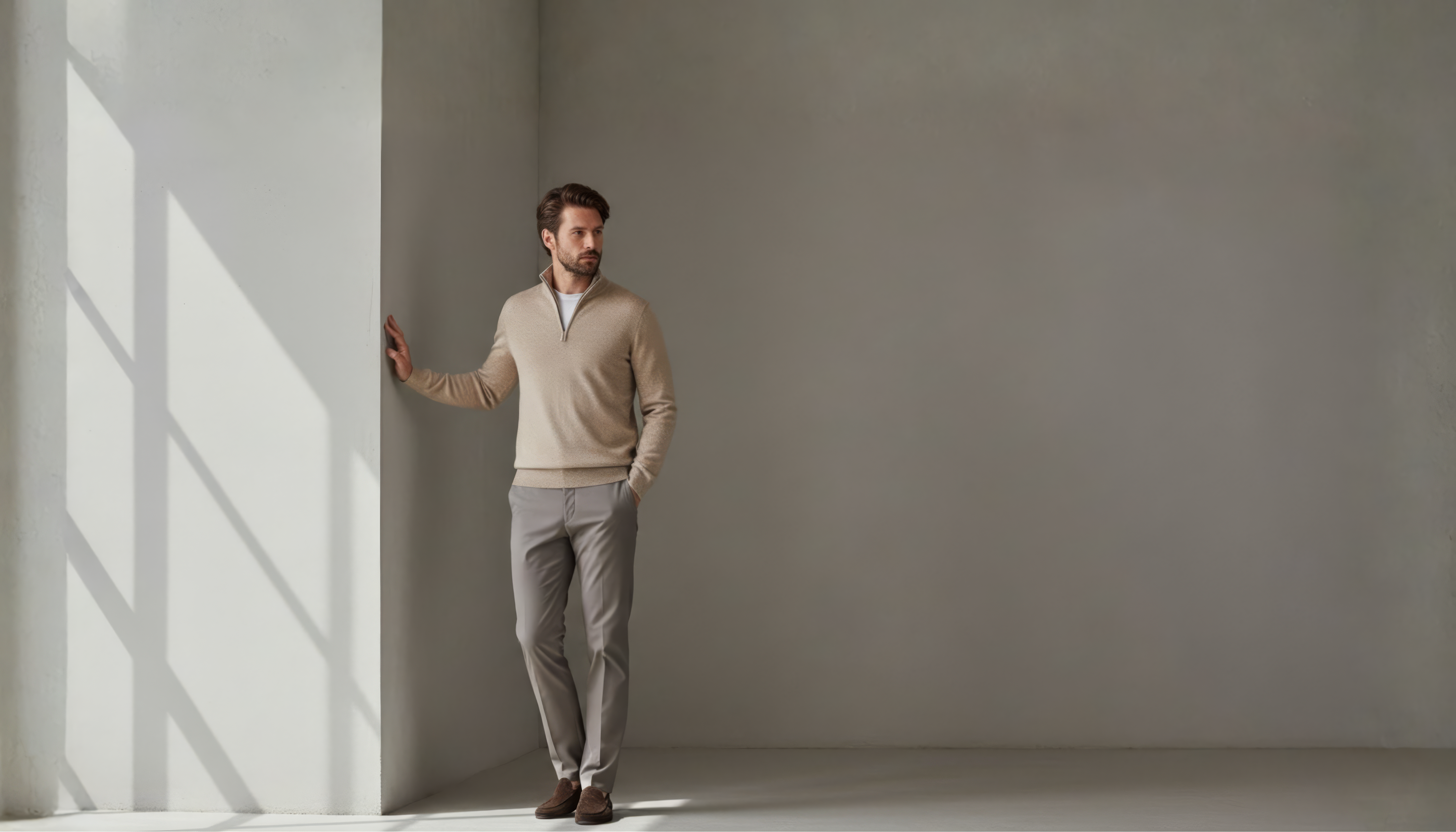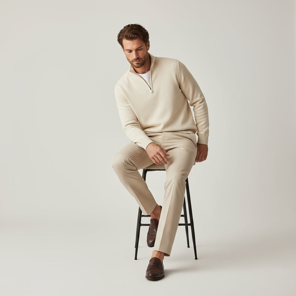 Men's Half Zip Sweater Wool Loose Fit Autumn Winter